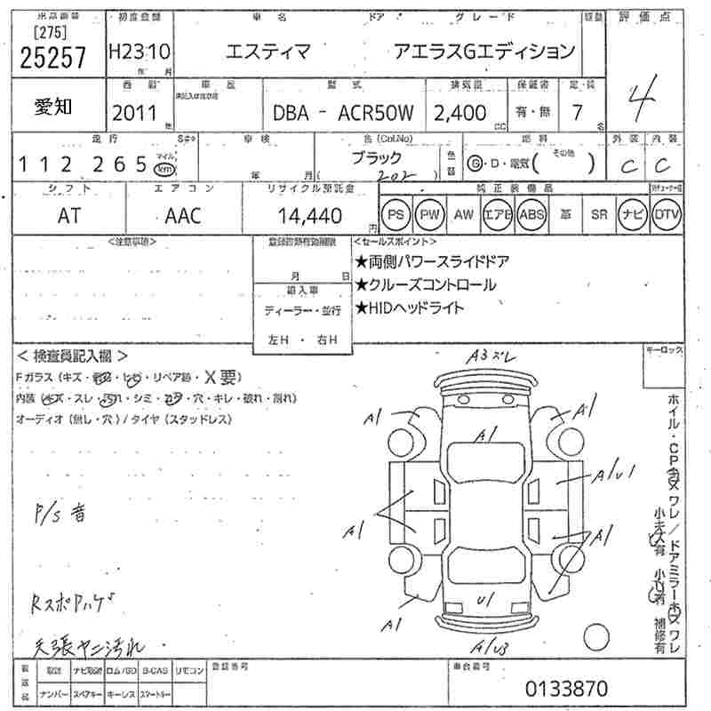 TOYOTA ESTIMA 2011 г., лот № 25257