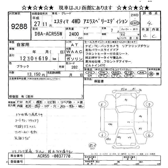 TOYOTA ESTIMA 2015 г., лот № 9288