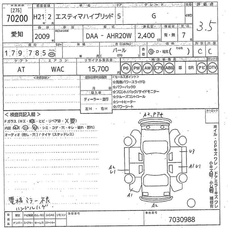 TOYOTA ESTIMA 2009 г., лот № 70200