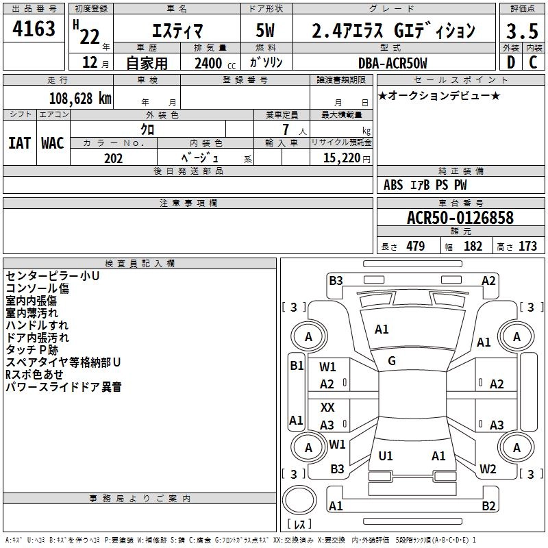 TOYOTA ESTIMA 2010 г., лот № 4163