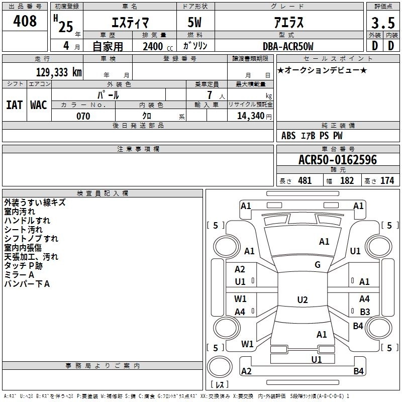 TOYOTA ESTIMA 2013 г., лот № 408