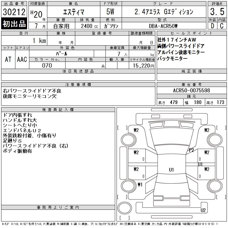 TOYOTA ESTIMA 2008 г., лот № 30212