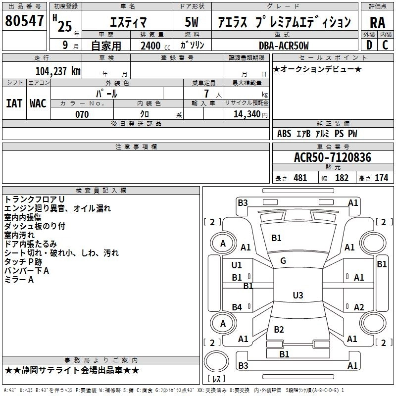 Статус выставлен на аукцион Лот 80547 Аукцион TAA Chubu Дата аукциона 12.03.2026