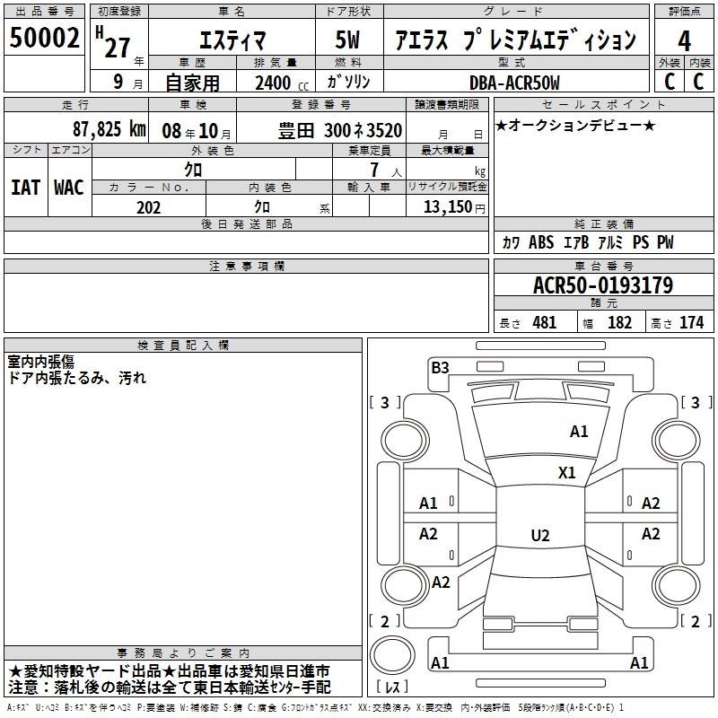 TOYOTA ESTIMA 2015 г., лот № 50002