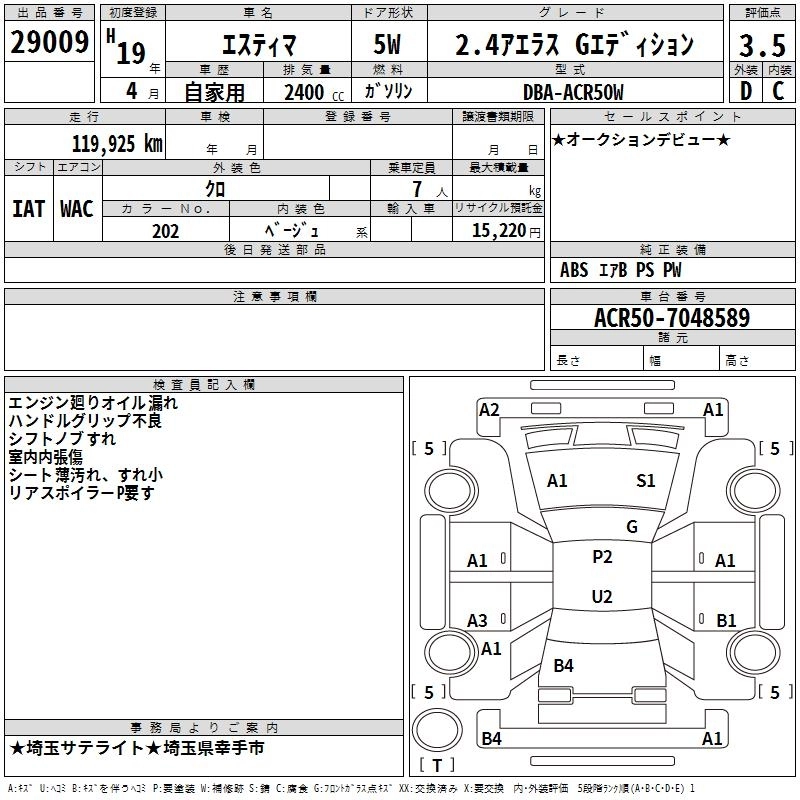 TOYOTA ESTIMA 2007 г., лот № 29009