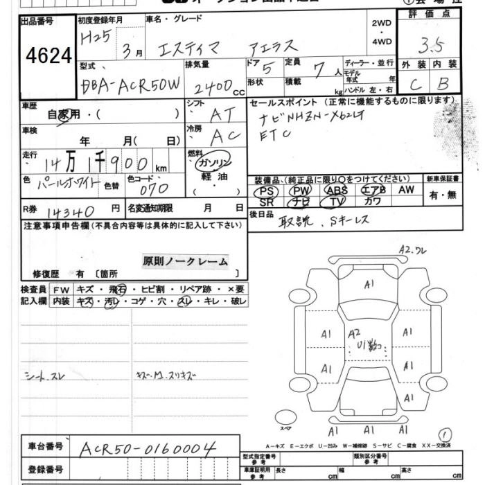 TOYOTA ESTIMA 2013 г., лот № 4624