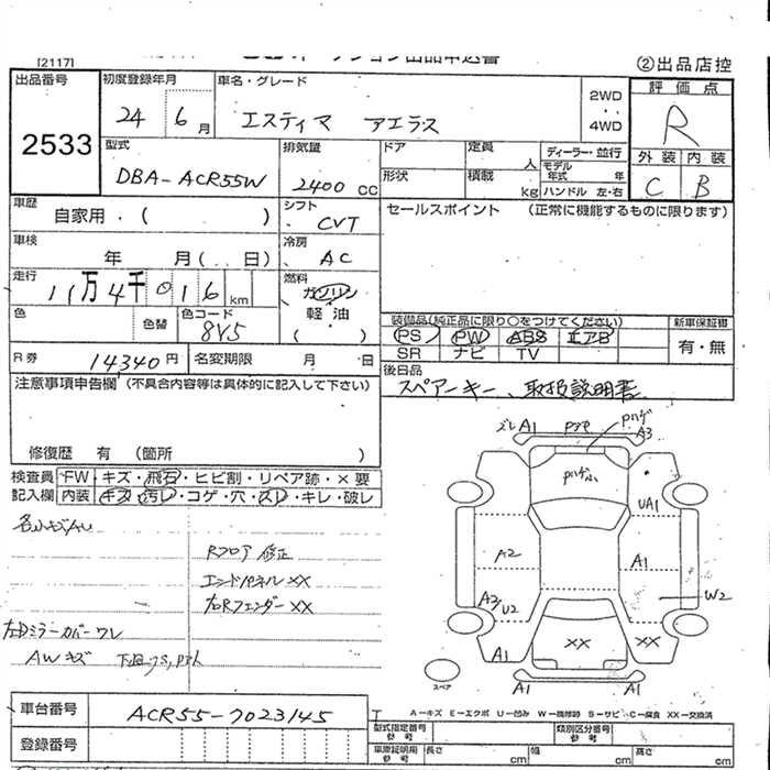 TOYOTA ESTIMA 2012 г., лот № 2533