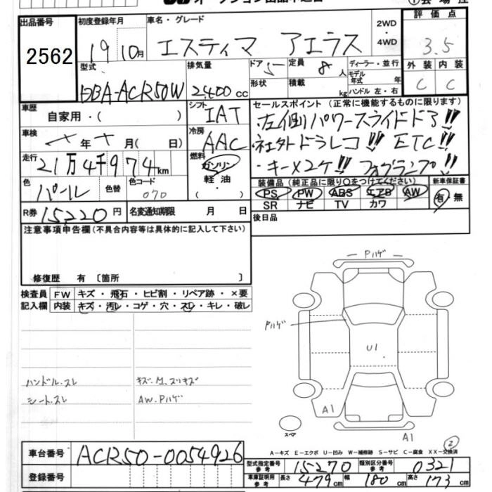 TOYOTA ESTIMA 2007 г., лот № 2562