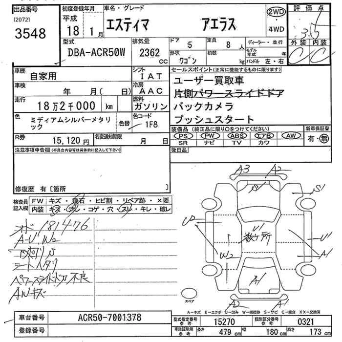 TOYOTA ESTIMA 2006 г., лот № 3548