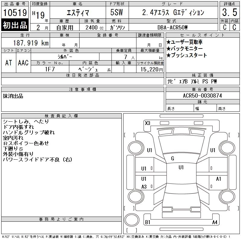 TOYOTA ESTIMA 2007 г., лот № 10519