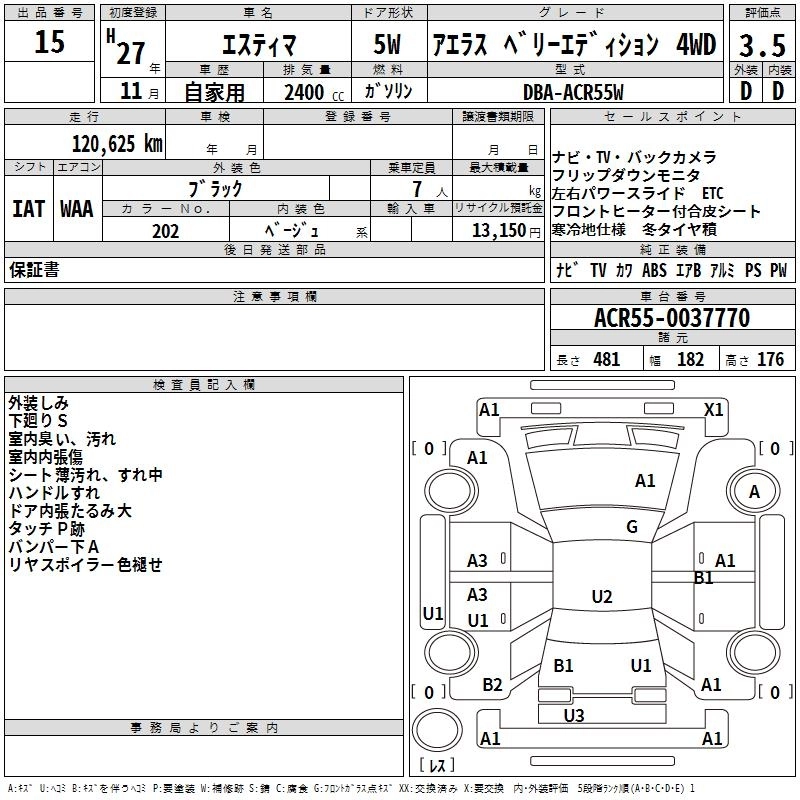 TOYOTA ESTIMA 2015 г., лот № 15