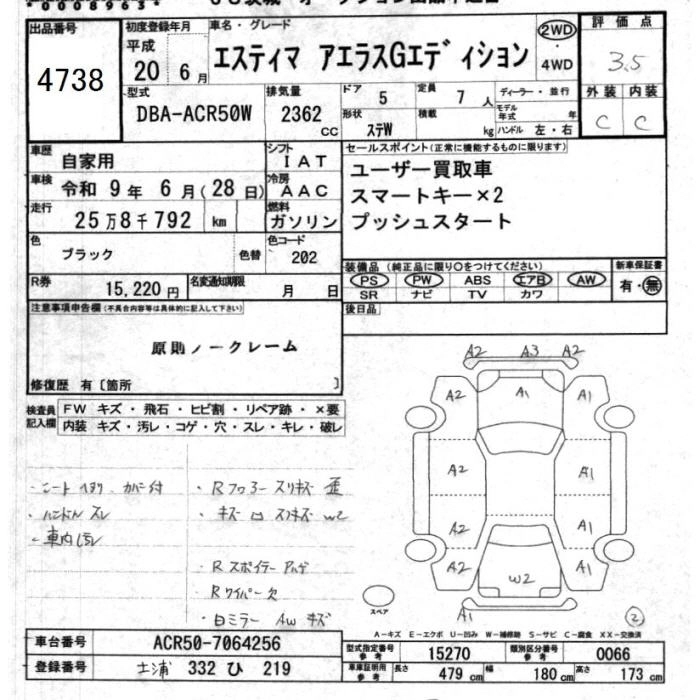TOYOTA ESTIMA 2008 г., лот № 4738
