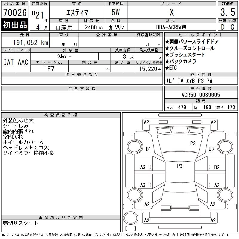 TOYOTA ESTIMA 2009 г., лот № 70026