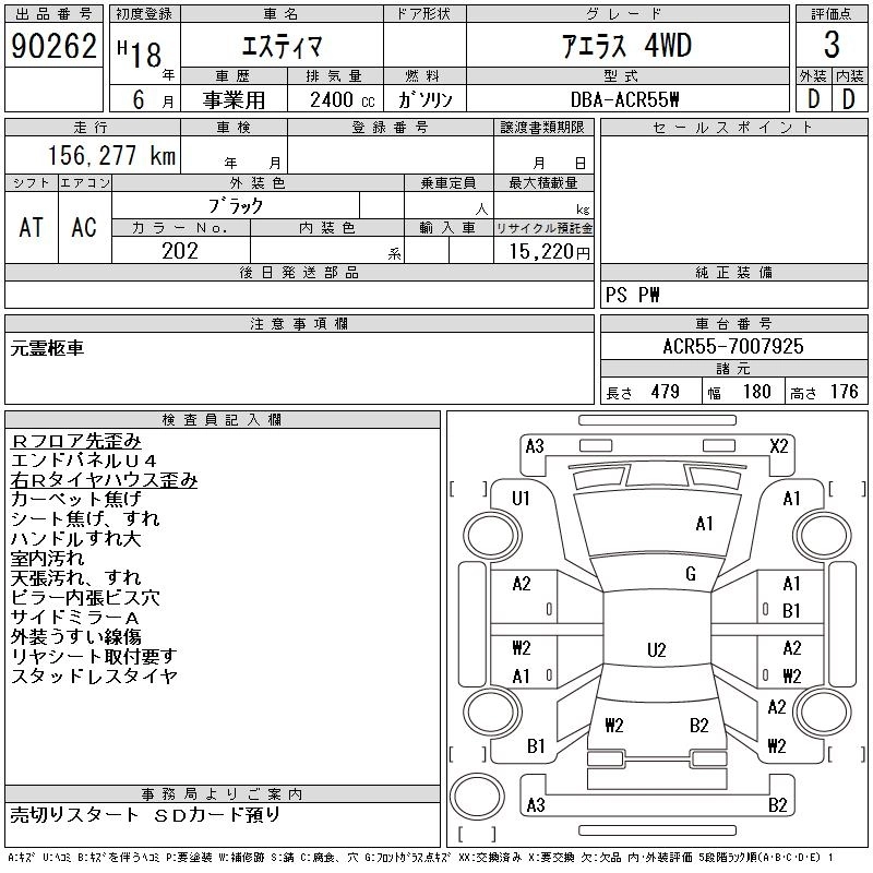 TOYOTA ESTIMA 2006 г., лот № 90262