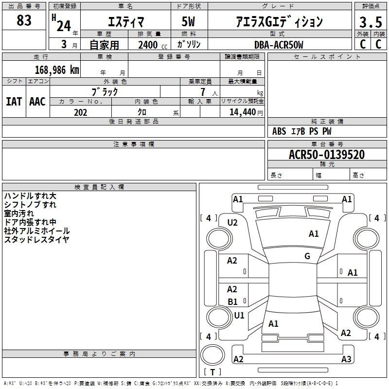 TOYOTA ESTIMA 2012 г., лот № 83