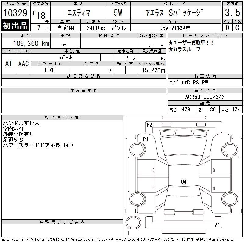 Год выпуска2006 Пробег 109 000 км КузовACR50W Комплектация AERAS S PACKAGE
