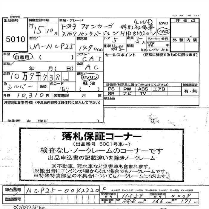 110 000 км КузовNCP25 Комплектация4WD X PAIRBENCH VER.-HID SELECT SPECIAL SI