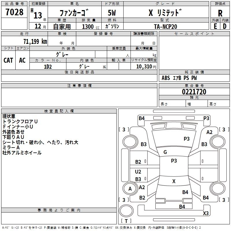 Год выпуска2001 Пробег 71 000 км КузовNCP20 КомплектацияX LIMITED