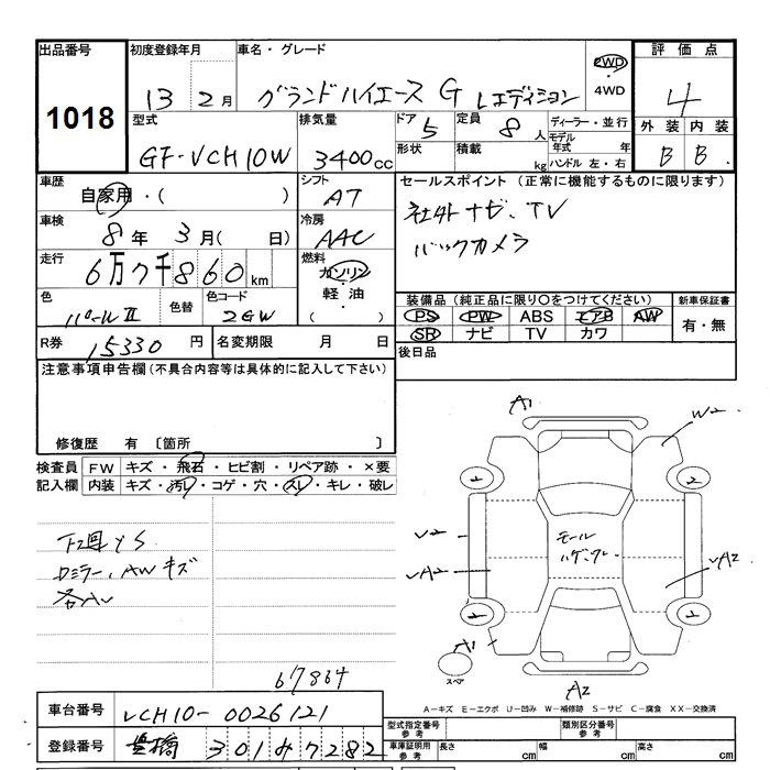 TOYOTA GRAND HIACE 2001 г., лот № 1018