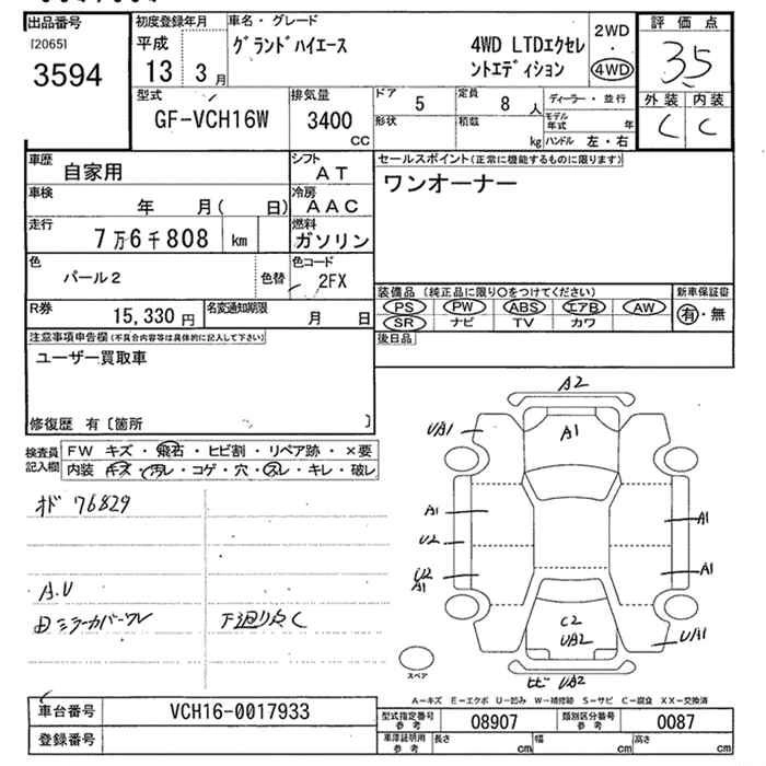 TOYOTA GRAND HIACE 2001 г., лот № 3594