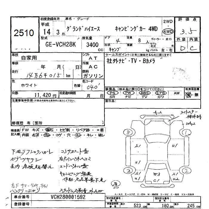TOYOTA GRAND HIACE 2002 г., лот № 2510