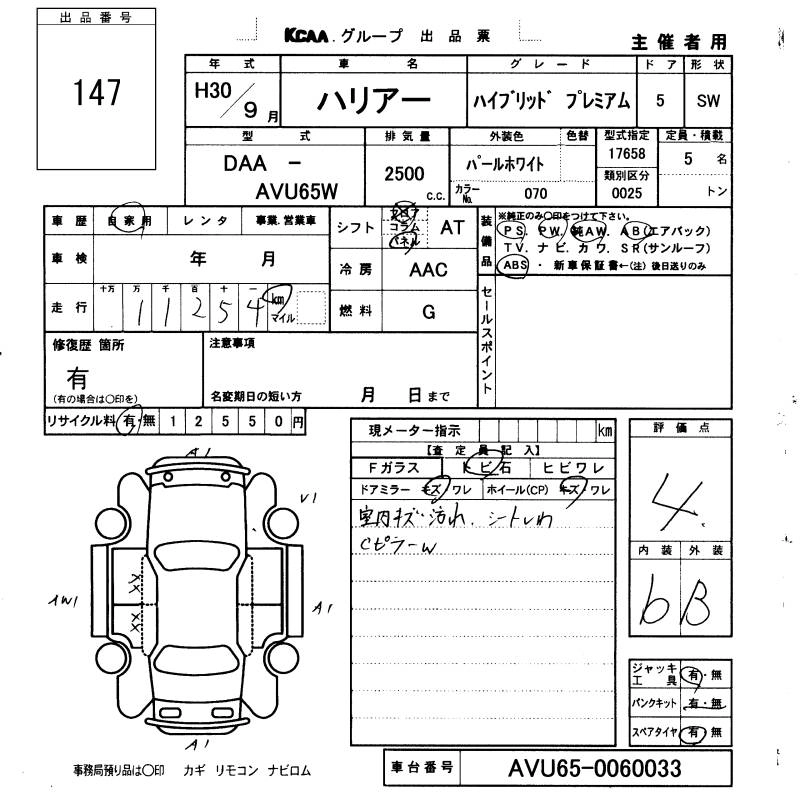 TOYOTA HARRIER HYBRID 2018 г., лот № 147