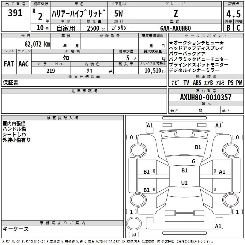 TOYOTA HARRIER HYBRID 2020 г., лот № 391