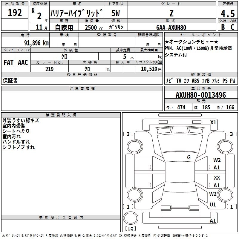 TOYOTA HARRIER HYBRID 2020 г., лот № 192