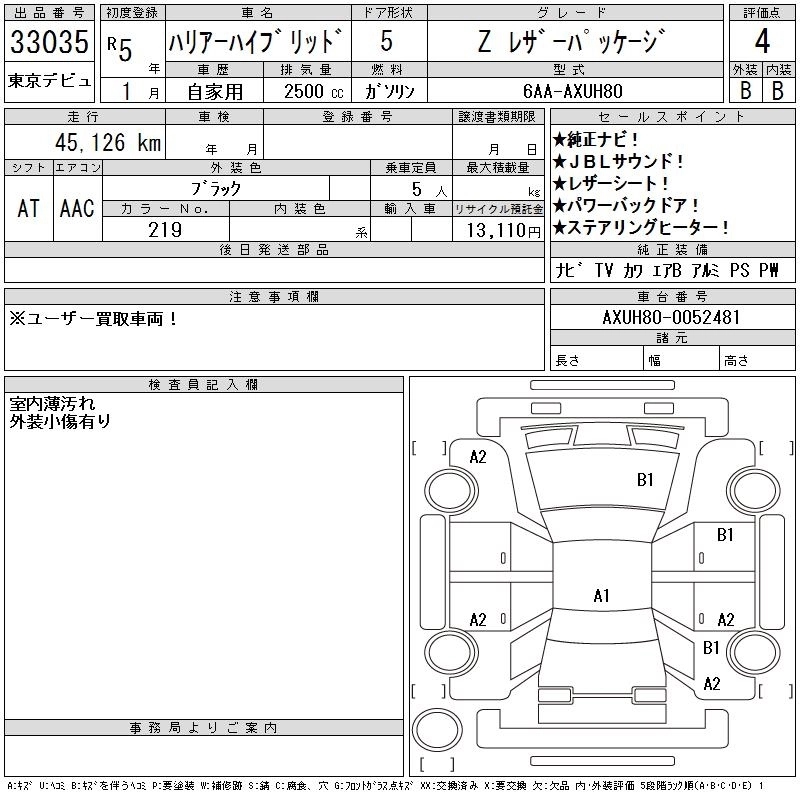 TOYOTA HARRIER HYBRID 2023 г., лот № 33035