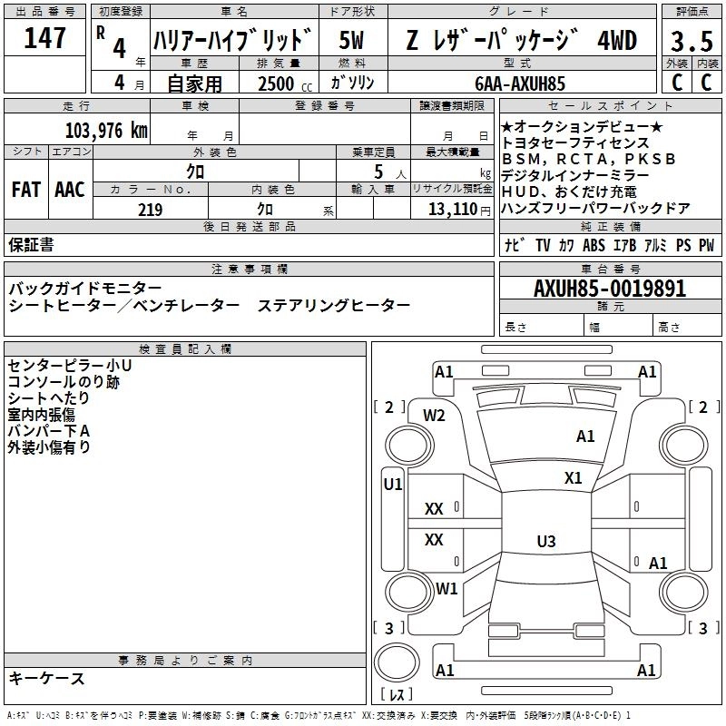 104 000 км КузовAXUH85 КомплектацияZ LEATHER PACKAGE 4WD