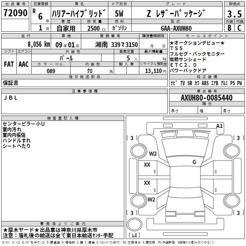 TOYOTA HARRIER HYBRID 2024 г., лот № 72090