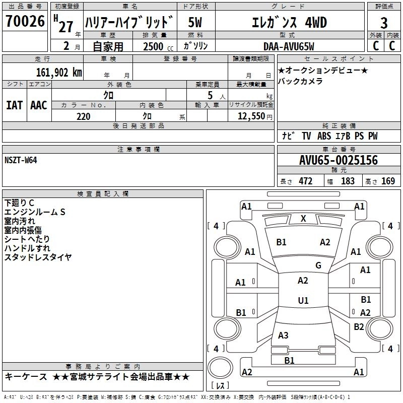 TOYOTA HARRIER HYBRID 2015 г., лот № 70026