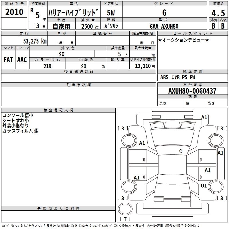 Статус выставлен на аукцион Лот 2010 Аукцион TAA Chubu Дата аукциона 19.03.2026