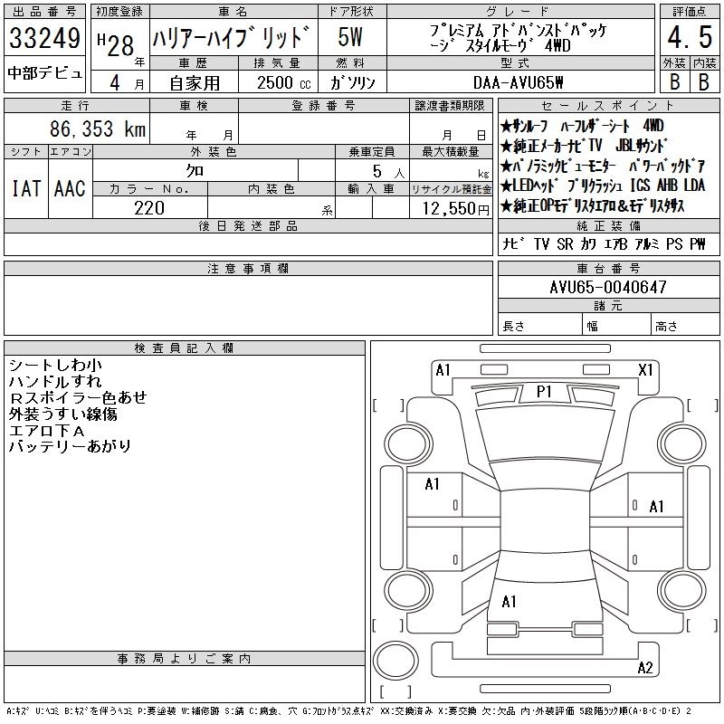 86 000 км КузовAVU65W Комплектация PREMIUM ADVAN PACK S4WD