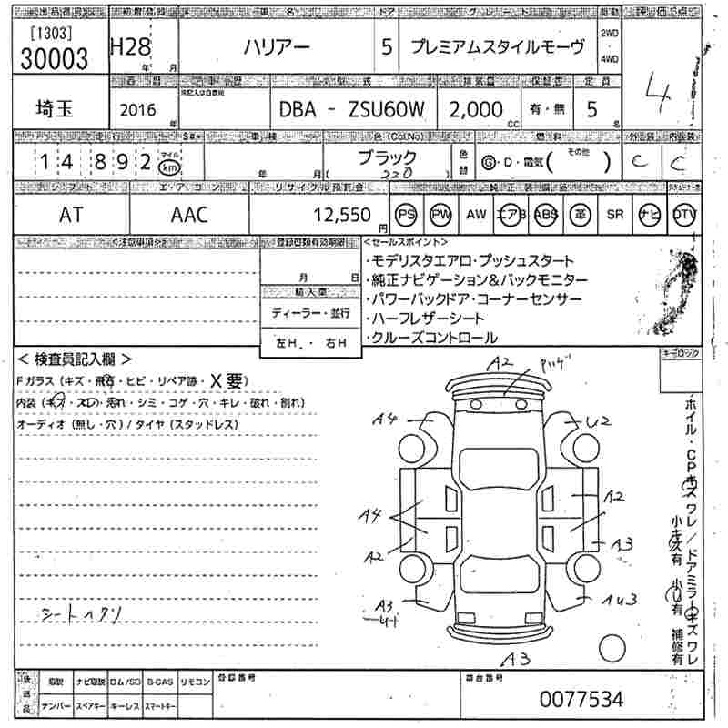 TOYOTA HARRIER 2016 г., лот № 30003