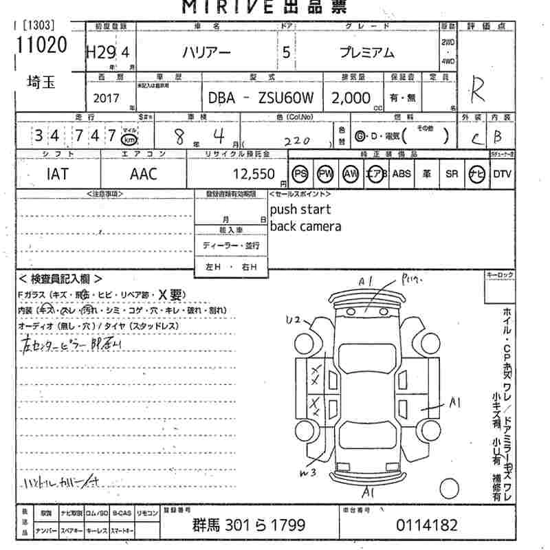 TOYOTA HARRIER 2017 г., лот № 11020