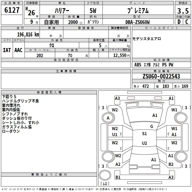 TOYOTA HARRIER 2014 г., лот № 6127