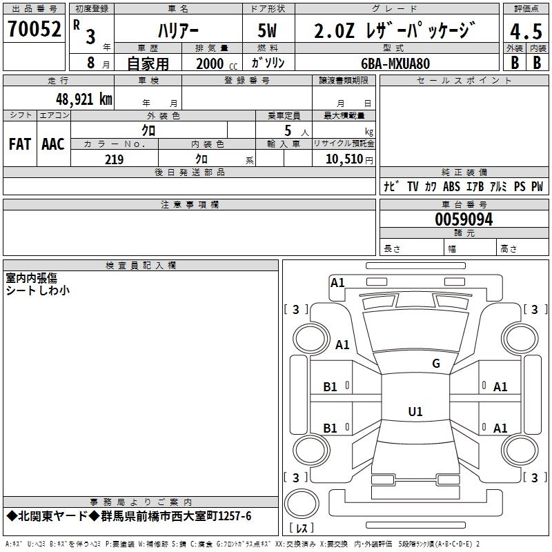 TOYOTA HARRIER 2021 г., лот № 70052
