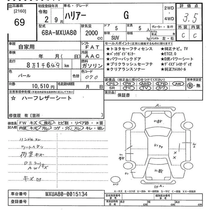 TOYOTA HARRIER 2020 г., лот № 69