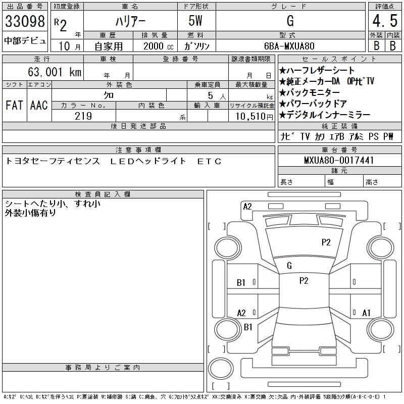 TOYOTA HARRIER 2020 г., лот № 33098