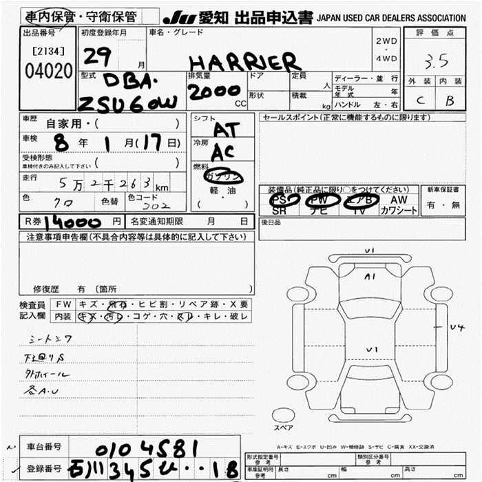 TOYOTA HARRIER 2017 г., лот № 4020