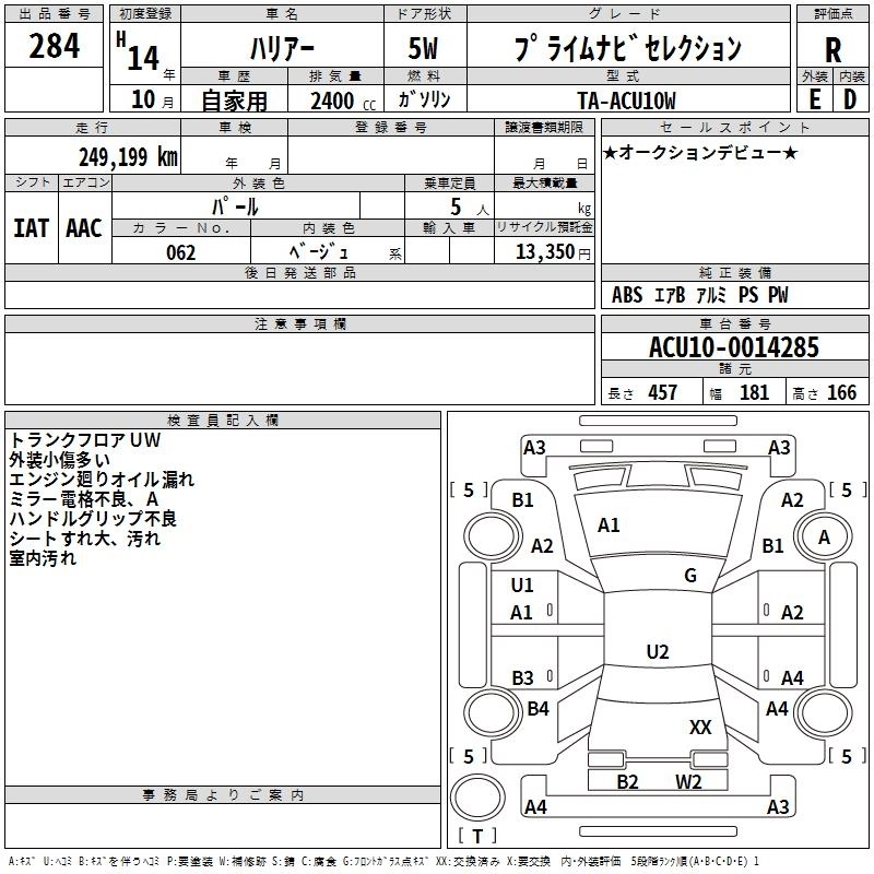 TOYOTA HARRIER 2002 г., лот № 284