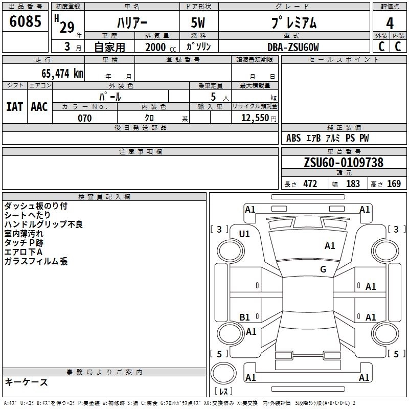 TOYOTA HARRIER 2017 г., лот № 6085
