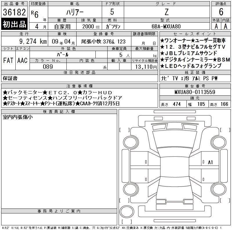 Статус выставлен на аукцион Лот 36182 Аукцион CAA Chubu Дата аукциона 10.12.2025