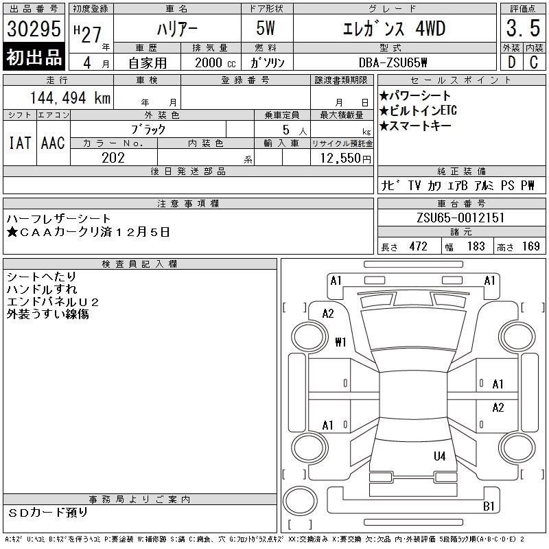 Статус выставлен на аукцион Лот 30295 Аукцион CAA Chubu Дата аукциона 10.12.2025