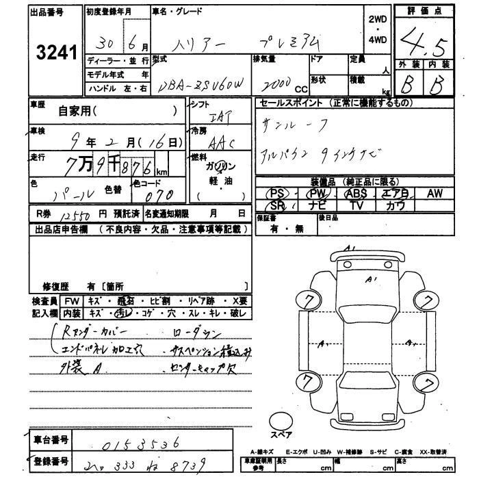 TOYOTA HARRIER 2018 г., лот № 3241