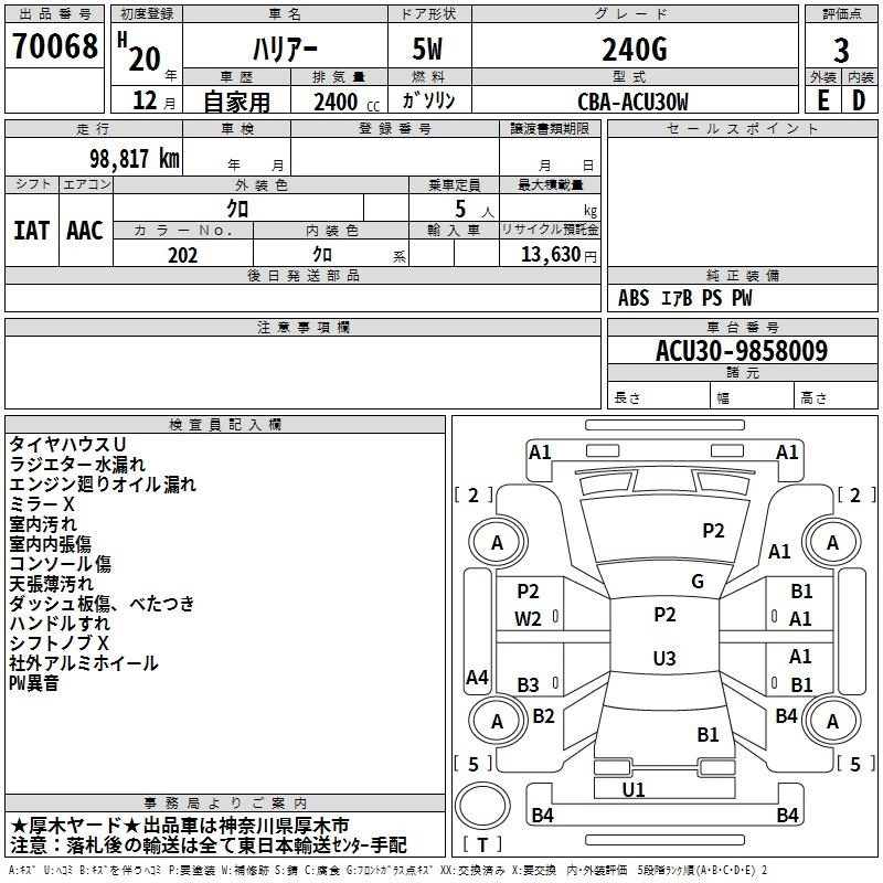 TOYOTA HARRIER 2008 г., лот № 70068