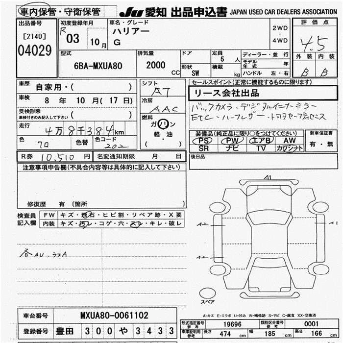 Статус выставлен на аукцион Лот 4029 Аукцион JU Aichi Дата аукциона 25.12.2025