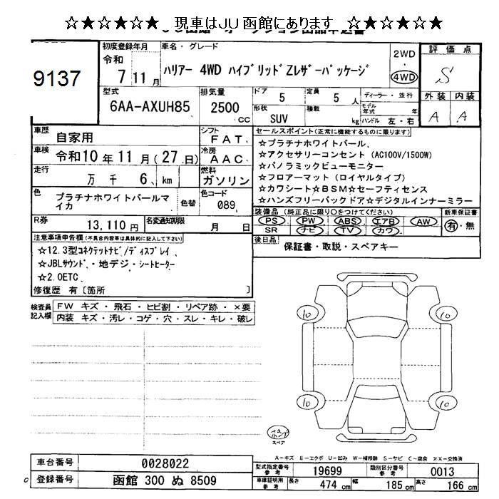 Статус не продан Лот 9137 Аукцион JU Hokkaido Дата аукциона 23.01.2026