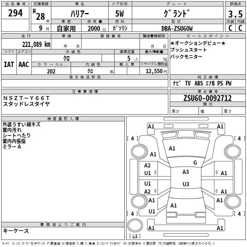 TOYOTA HARRIER 2016 г., лот № 294